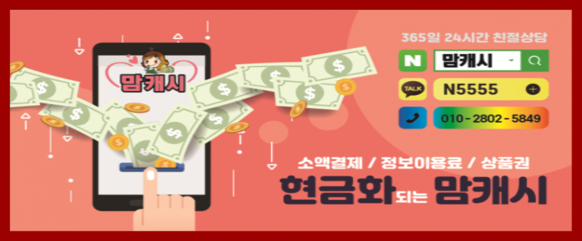 이제는 편리하게 이용이 가능하면서도 낮은 수수료를 제시하고 있는 맘 캐 시을 통해 해결하실 수 있습니다>
