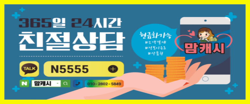 이제는 편리하게 이용이 가능하면서도 낮은 수수료를 제시하고 있는 맘 캐 시을 통해 해결하실 수 있습니다ː